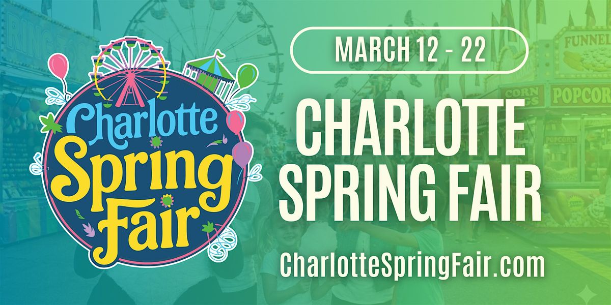 Welcome to the Charlotte Spring Fair 2026! Get ready for a fun-filled spring starting on Thu, Mar 12, 2025 at the Route 29 Pavilion. Join us for a variety of exciting activities, delicious food, games, rides, and much more. Bring your friends and family to create some lasting memories. Don't miss out on Charlotte's First Fair of 2026 - mark your calendars now!
