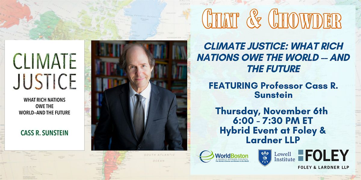 Join us for this installment of our popular Chat & Chowder series, featuring the Robert Walmsley University Professor at Harvard University, Dr. Cass R. Sunstein. Dr. Sunstein will discuss his new book, Climate Justice: What Rich Nations Owe the World -- and the Future.