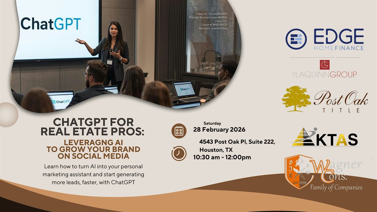 Social media doesn’t have to take over your life — and you don’t need to be “good at tech” to use AI. In this fast-paced, practical class, real estate agents will learn how to use ChatGPT to create scroll-stopping content, write better captions, and stay consistent on social media without burning out.