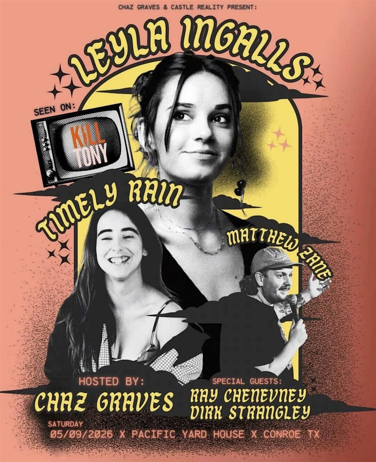 K*ll Tony comedians Leyla Ingalls & Timely Rain headline a night of comedy @ Pacific Yard House w/ Matthew Zane, Ray Chenevey Dirk Strangely