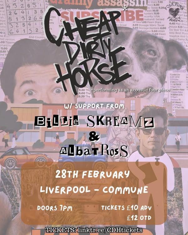 The incredible Cheap Dirty Horse are back in Liverpool at the Commune with support from Billie Skreamz and Albatross! Disclaimer: