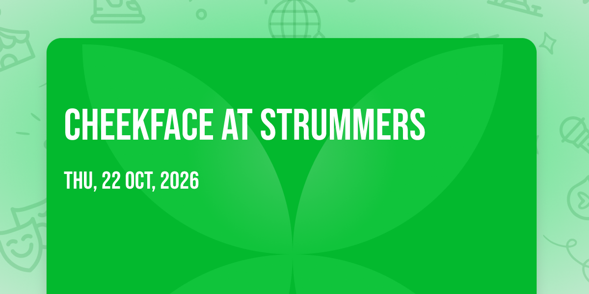 π Welcome to Cheekface at Strummers, where dreams come alive and possibilities are endless! ποΈ Join us at Strummers in the heart of Fresno, CA for an event that defies expectations. π On October 22nd, 2026 at 07:00 PM, be part of something truly extraordinary as we bring together innovation, entertainment, and pure magic. β¨ Every aspect has been carefully designed to ensure an unforgettable experience for all our guests. Whether you're seeking adventure, inspiration, or simply a break from the ordinary, this event promises to deliver beyond your wildest dreams. π Prepare for a journey into the extraordinary!