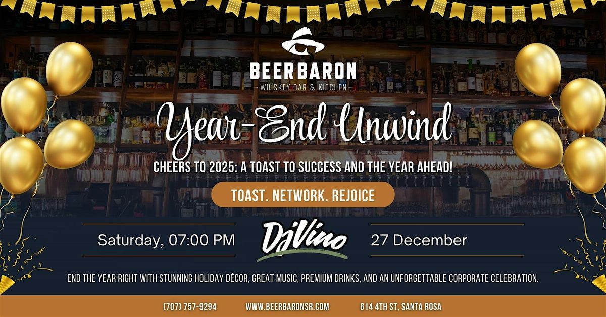 Wrap up the year in style at Beer Baron Whiskey Bar & Kitchen with an evening designed to celebrate wins, connections, and new beginnings. Join us for a sophisticated Year-End Unwind featuring premium drinks, great music, and an unforgettable ambiance.