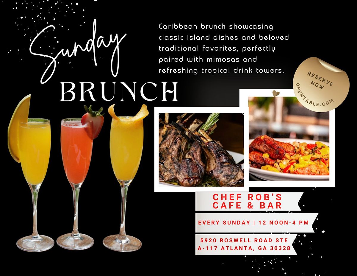 Join us at Chef Rob's Cafe & Bar for a laid-back Sunday Brunch filled with delicious food, crafted drinks and great vibes! 12-4 PM.