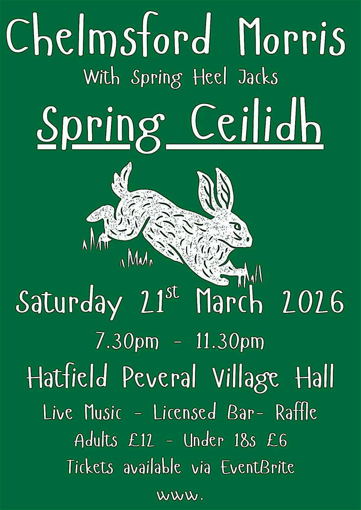 Join us for a lively evening of dancing and fun at the Hatfield Peverel Village Hall! Get ready to kick up your heels on March 21, 2026 at 7:30 PM. Live music from Spring Heel Jacks band , licensed bar and raffle. We encourage everyone to join in! No experience necessary, just a willingness to have a great time. See you there!