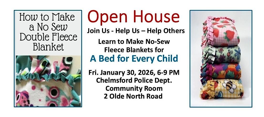 Learn to make no-sew fleece blankets for A BED FOR EVERY CHILD. A Massachusetts non-profit organization whose mission is to provide children in need with safe and comfortable beds. Materials will be provided.