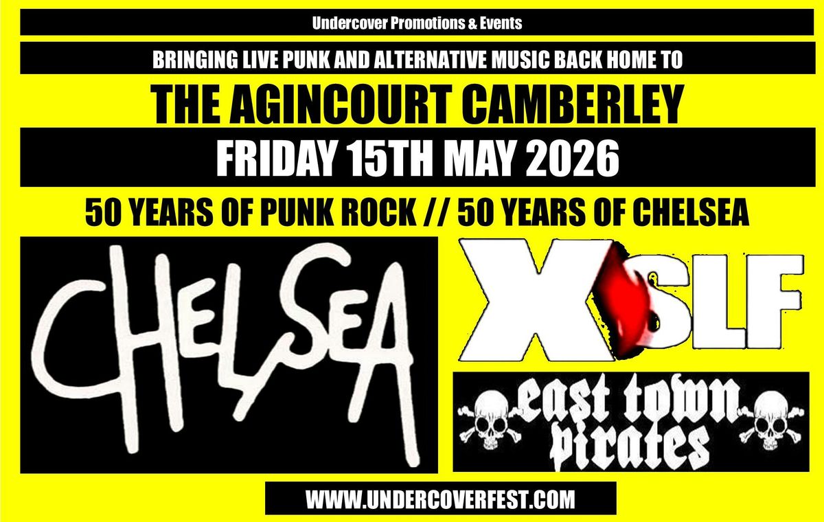 CHELSEABACK UNDERCOVER IN SURREYTHIS TIME AT THE ICONIC AGINCOURT CAMBERLEYAll part of the CHELSEA's The Wild Road Tour: 50 Years Of Punk! Along with a rather excellent support of XSLF AND EAST TOWN PIRATESCHELSEAXSLF
