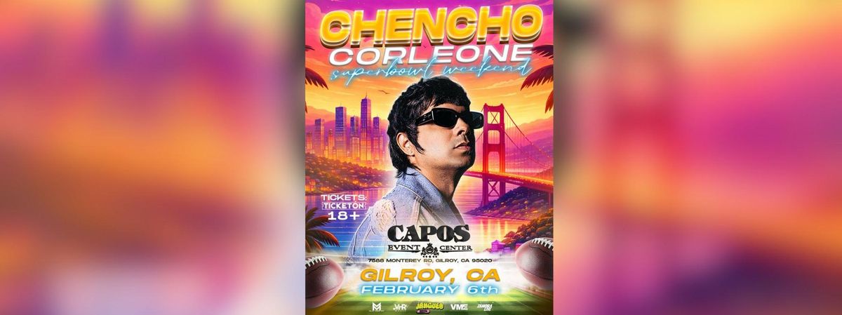 Experience the exciting event 'CHENCHO CORLEONE EN GILROY' at Capos Event Center, Gilroy, CA, United States. This must-attend gathering promises an unforgettable experience for all attendees. Join us for a day filled with innovation, networking, and inspiration. Reserve your place now for an unparalleled exciting experience. #CHENCHOCORLEONEENGILROY #event #exciting #GilroyEvents #CAEvents