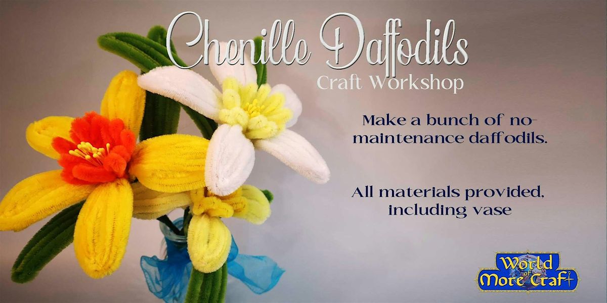 By the end of the class, you will not only have learned a new skill but also have a lovely set of chenille daffodils to take home with you in a glass vase. Immerse yourself in this transformative experience and brighten up your day with these cheerful floral creations.