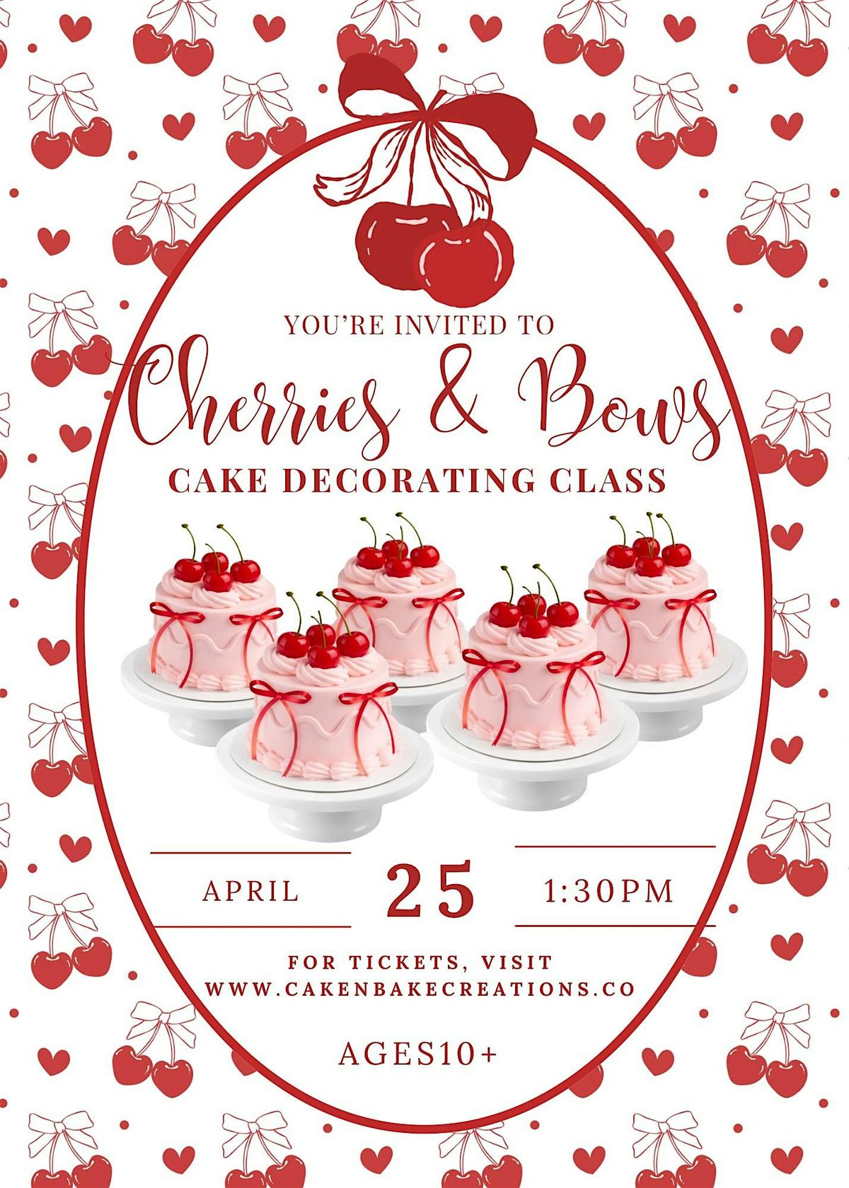Get ready for a sweet and stylish experience at our Cherries & Bows Cake Decorating Class! Perfect for beginners and cake lovers alike, this hands-on class will guide you step-by-step in creating your very own beautifully decorated cake featuring charming cherry details and elegant bow accents.
