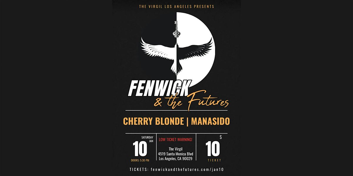 LOW TICKET WARNING! This show will sell out! Cherry Blonde and Manasido will be opening the evening with their signature SoCal alt rock sounds, setting the tone before handing the stage over to rising emo/cosmic rock storytellers Fenwick & the Futures, headlining LA for their very first time.