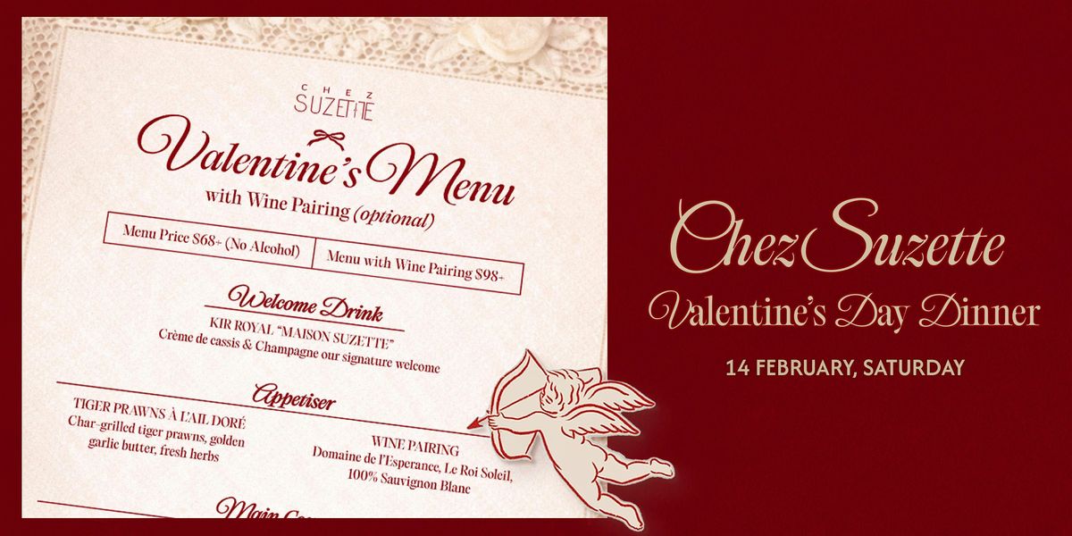 Celebrate Valentine’s Day with two dining experiences at Chez Suzette. Choose a 3-course dinner at $68+ or elevate the evening with a wine pairing experience at $98+.