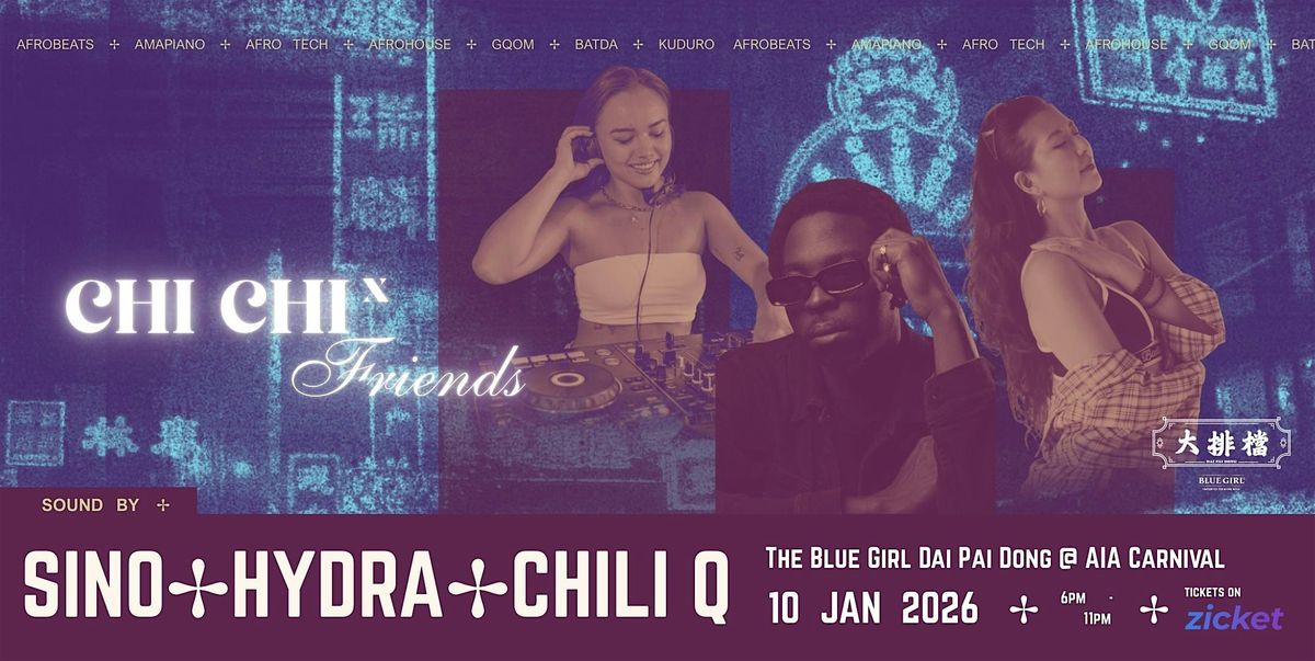 On Saturday, January 10, 2026, the vibrant energy of African rhythms will take over “Chi Chi x Friends @ The Blue Girl Dai Pai Dong @ The AIA Carnival” with an unforgettable night of music and movement. From 6:00 PM to 11:00 PM, the event will showcase the groundbreaking sounds of DJ Chili Q, DJ Hydra, and DJ SINO, three powerhouses shaping Hong Kong’s Afro music landscape.