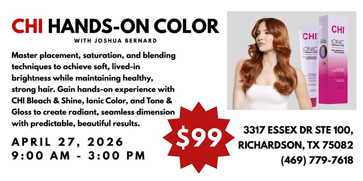 Step into the world of CHI Color with this hands on class and master the essentials of every color line we offer. Through hands-on demos, real-world tips, and simplified color theory, you’ll eliminate the guesswork and create beautiful, predictable results with confidence. Learn placement, saturation, and blending techniques for soft, lived-in brightness while maintaining healthy, strong hair. Leave ready to paint seamless, radiant dimension using CHI’s Bleach & Shine, Ionic Color, and Tone & Gloss.