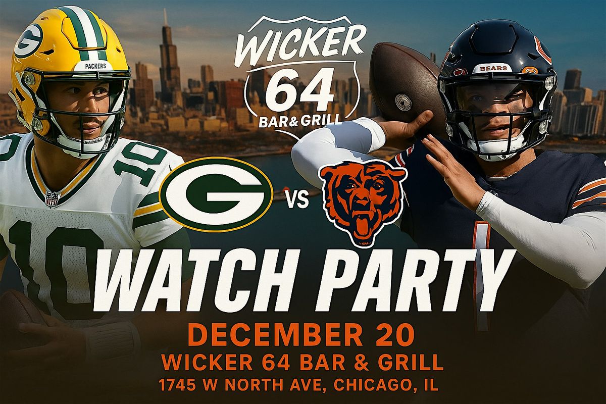 Hey football fans! Join us at 1745 W North Ave on December 20, 2025 at 5:00 PM (Central Time) for an epic showdown between the Chicago Bears and Greenbay Packers. Let's cheer on our favorite teams together and enjoy the game on the big screen. Don't miss out on the fun, mark your calendars now!