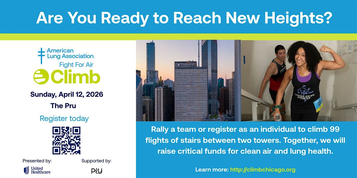 Join us for our Fight for Air Climb! Register at www.climbchicago.org to climb 99 floors at The Pru for lung health and clean air!