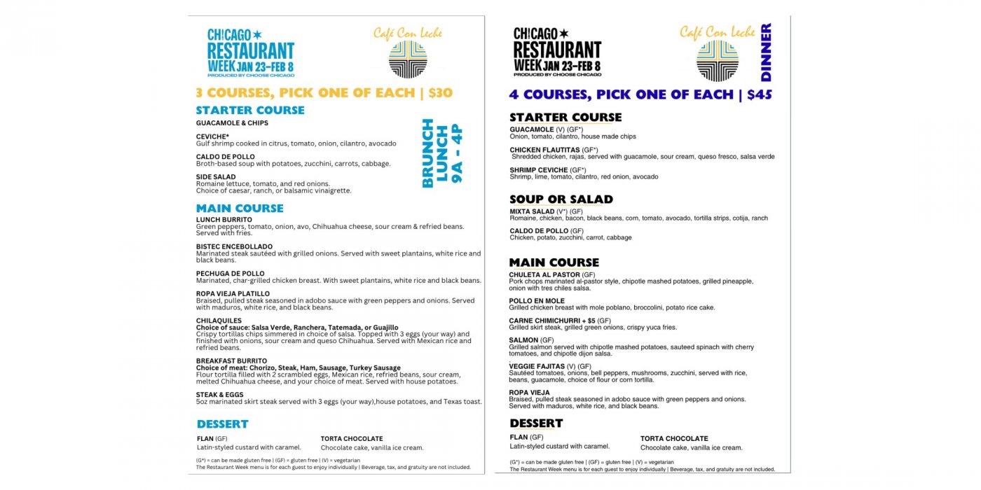 Café Con Leche is excited to take part in Chicago Restaurant Week through February 8.