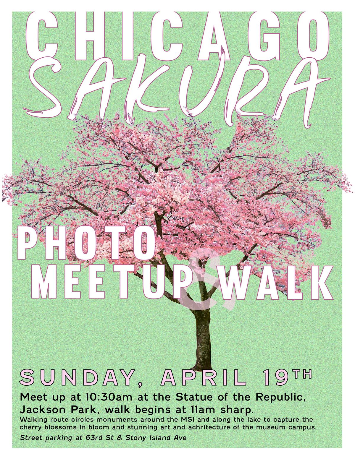 Join us for a fun photo walk capturing Chicago’s beautiful sakura blooms in person! Full Flyers and details below.About this Event