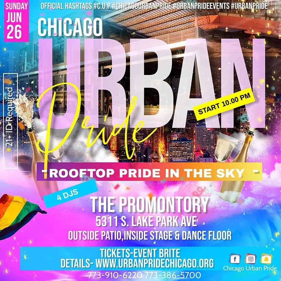Chicago Urban Pride In The Sky is the after party of the Gay Pride Park Event at Jackson Park. This event is the biggest Gay Pride party on the south side for over 20 years. Early arrival is strongly recommended. Over the past 10 years, there have been over 300 people in line at time of opening. Therefore, we strongly recommend you purchase the VIP Admission to avoid the long line. There will be a VIP Admission line, which tickets are only available purchase on Eventbrite. No one will be able to pay for VIP Admission at the door.