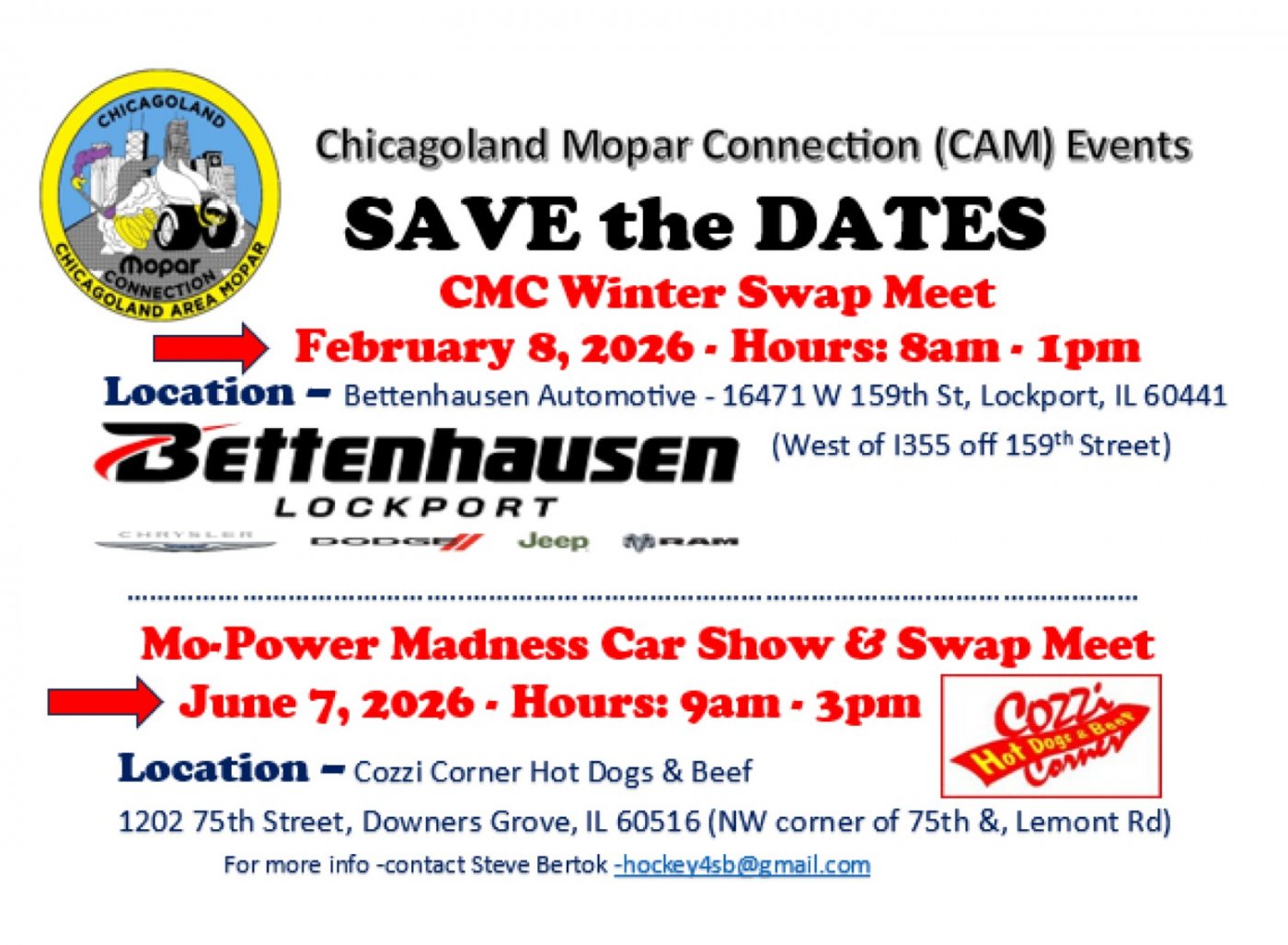 All checks should be made out to: Chicagoland Mopar Connection or CMC CAM Chapter.