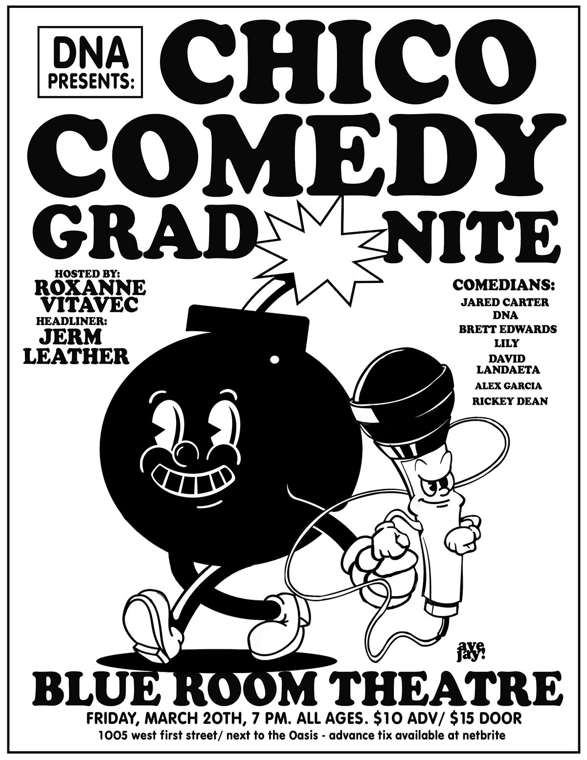 Come laugh with us as Chico's newest batch of comics take to the stage. Hosted by Roxanne Vitavec. With headliner Jerm Leather.
