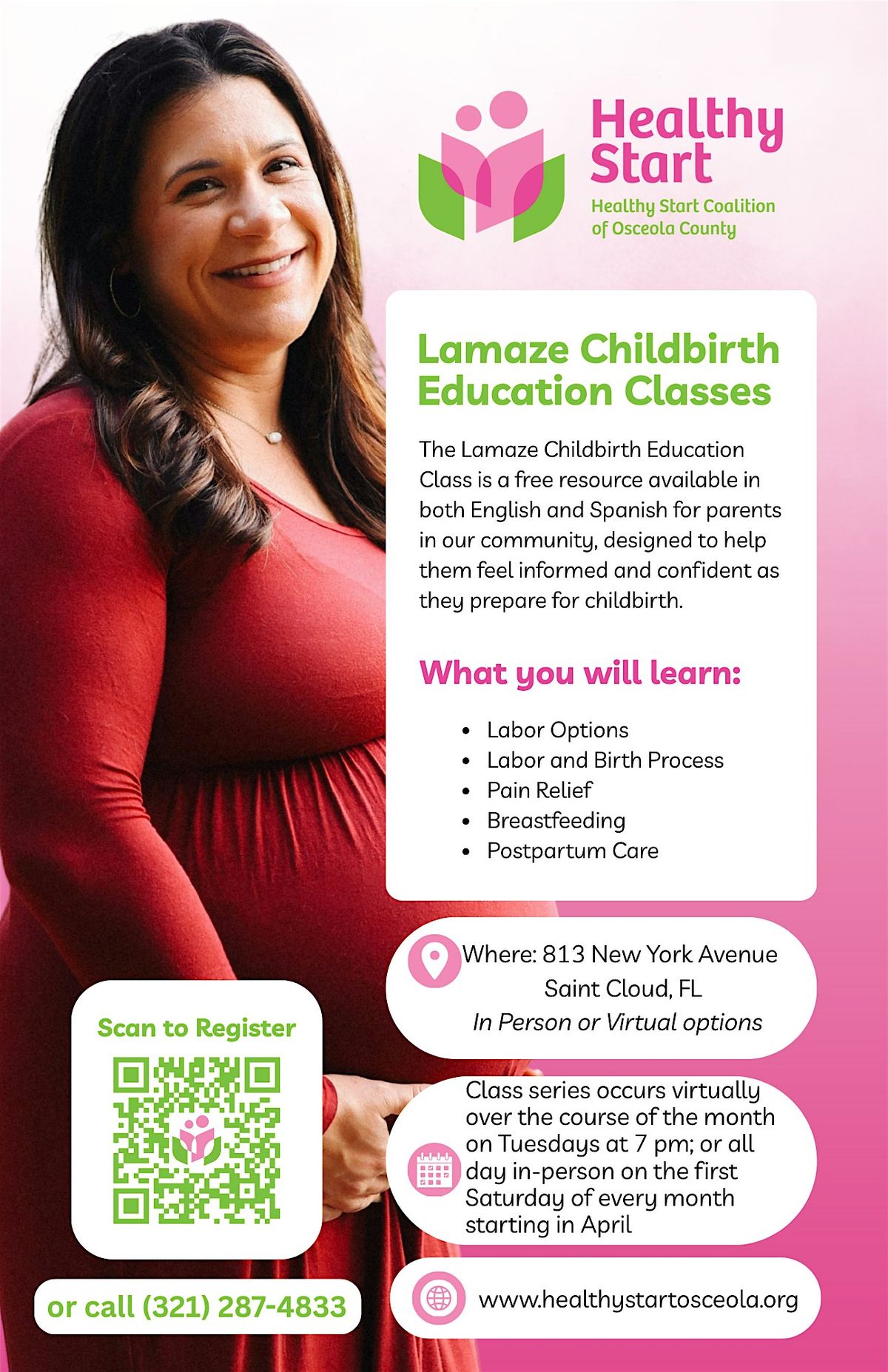 In this free childbirth education class, you will learn about labor options, the labor and birth process, pain relief techniques, breastfeeding basics and postpartum care and recovery.