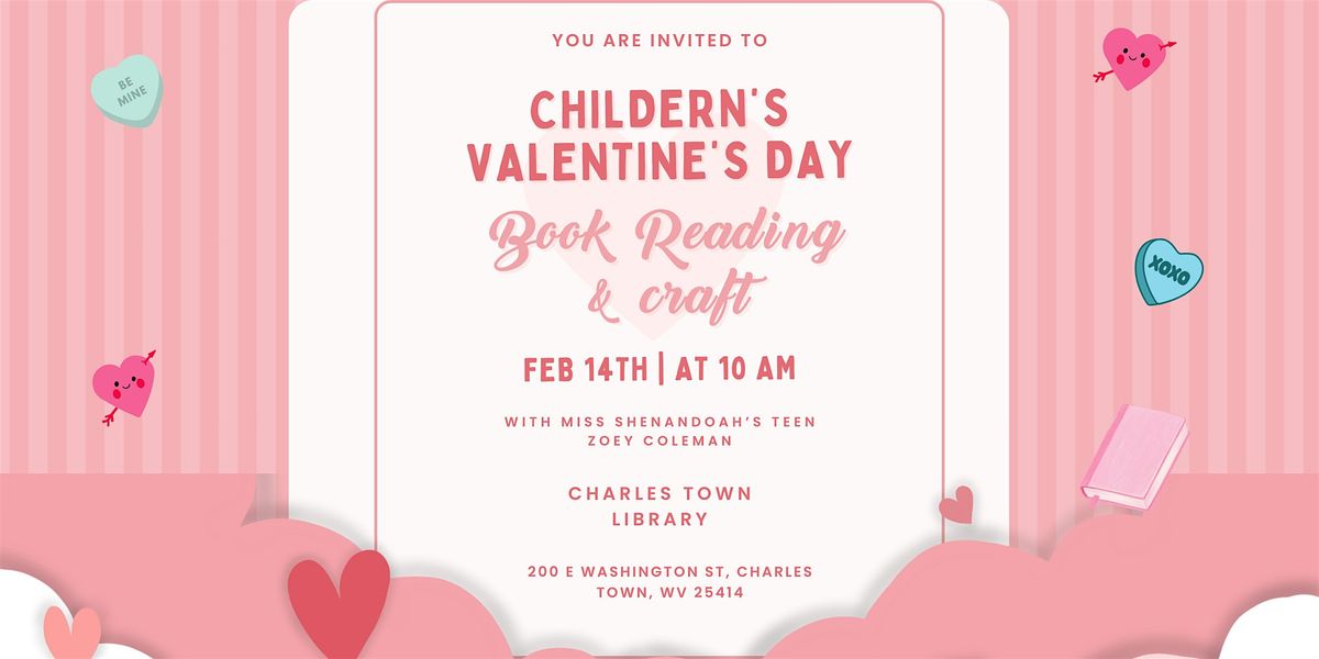Join us at the Charles Town Library for a special Valentine's Day storytime with Miss Shenandoah's Teen! Children will enjoy a festive book reading followed by a fun Valentine's Day craft in a warm, welcoming space designed to celebrate kindness, creativity, and the joy of reading.