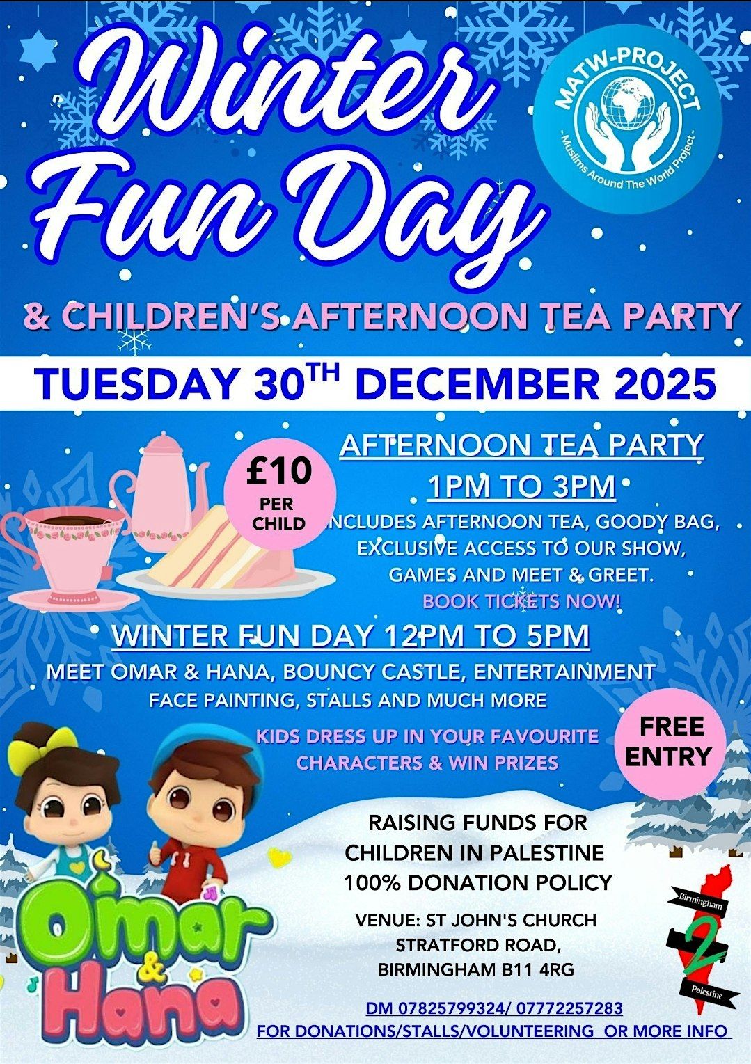 - Delicious sandwich, drink, and snacks in a goody bag including surprise toys to take home! 🥪 🧁🍬- Party entertainment and games🎳- Meet & greet with Hana & Omar! 🩷💙Date: Tuesday, 30th DecemberAfternoon Tea: 1pm- 3pm (Ticket only) Winter Fun Day: 12pm - 5pm (Free entry)