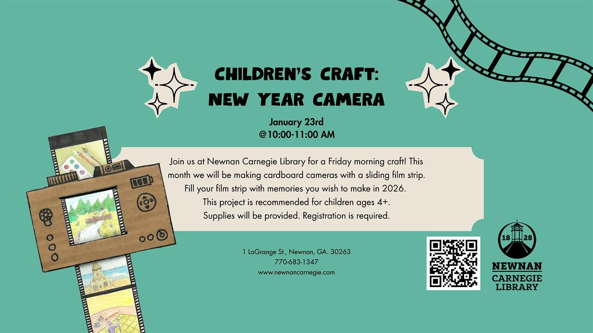 Join us at Newnan Carnegie Library for a Friday morning craft! This month we will be making cardboard cameras with a sliding film strip. Fill your film strip with memories you wish to make in 2026.