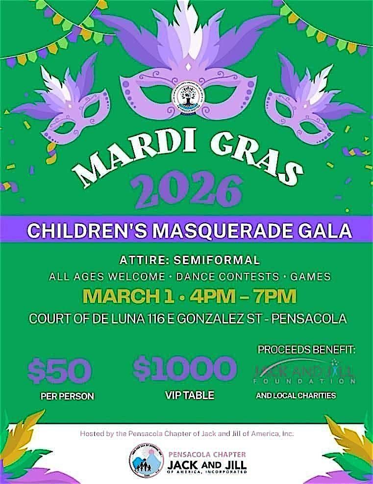 Let the good times roll at the 4th Annual Children’s Masquerade Gala! Slip on your brightest beads, boldest mask, and most festive outfit, then jump into a whirlwind of Mardi Gras magic. With music, dancing, lively games, and surprises bursting with color, this celebration is all about energy, laughter, and joyful fun. Kids—get ready to sparkle, shimmy, and celebrate in true Mardi Gras spirit!