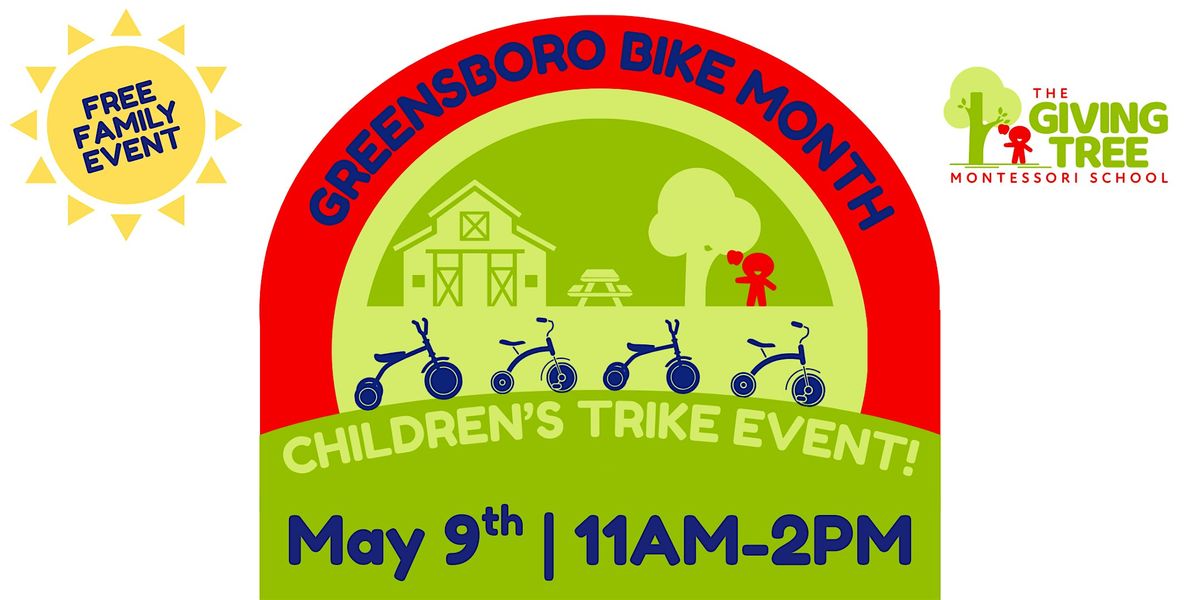 Come celebrate National Bike Week and Greensboro’s Bike Month with The Giving Tree Montessori School at our Children’s Trike Event on Saturday, May 9th from 11am–2pm! This family-friendly celebration invites young riders to bring their tricycles and enjoy a variety of playful, bike‑themed activities designed just for them.