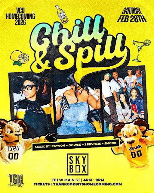 Welcome to Chill & Spill: VCU Homecoming Day Party! Get ready to turn up and celebrate VCU Homecoming in style at Ember Music Hall. Join us on Sat, Feb 28, 2026 at 4:00 PM for an epic day party you won't want to miss. Expect good vibes, great music, and plenty of opportunities to chill and spill with your friends. Let's make some unforgettable memories together at this must-attend event! See you there!