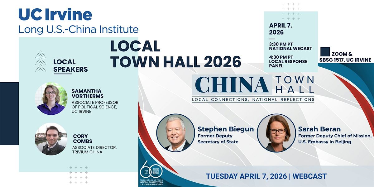 The Long U.S.-China Institute at UC Irvine will host a local China Town Hall as part of the national program organized by the National Committee on U.S.-China Relations.