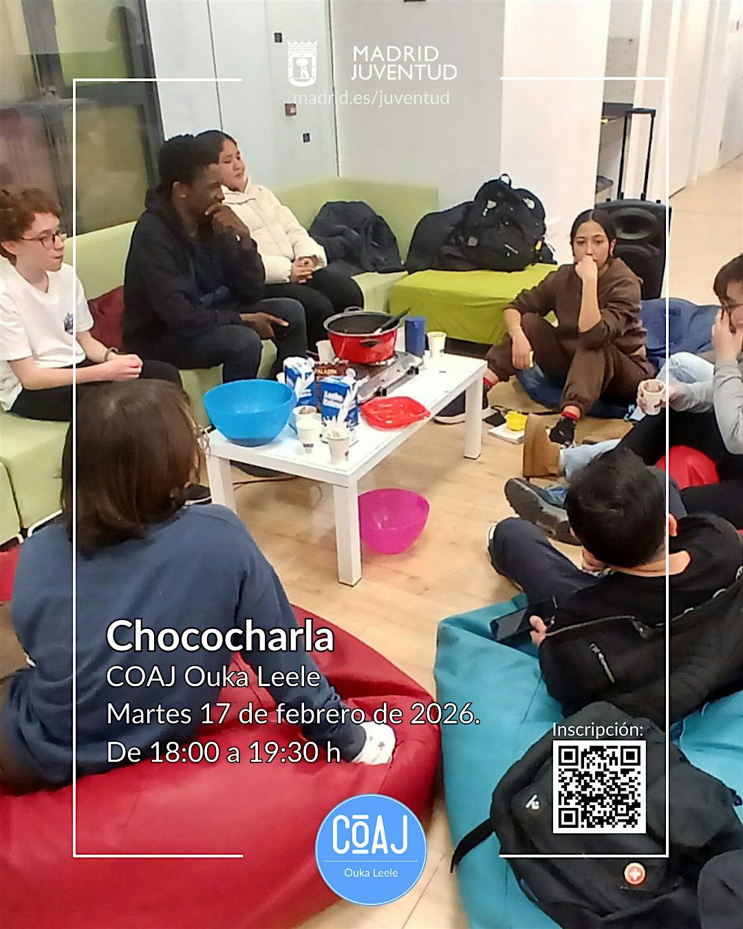 Vente a hablar de temas interesantes e importantes con las compañeras de Madrid Salud. Aprovecha esta oportunidad para compartir y aprender mientras disfrutas de una deliciosa taza de chocolate. ¡No te lo pierdas!