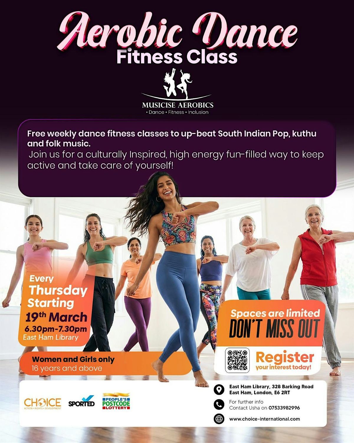 Join us for Choice Musicise Aerobics - an awesome Dance Fitness session for Women and Girls only, with the energetic Usha. This is an in-person event where you'll move, sweat, and have loads of fun to Tamil and other South-Indian music. Perfect for all levels, it's your chance to boost fitness while dancing your heart out. Come, let’s make fitness a party!