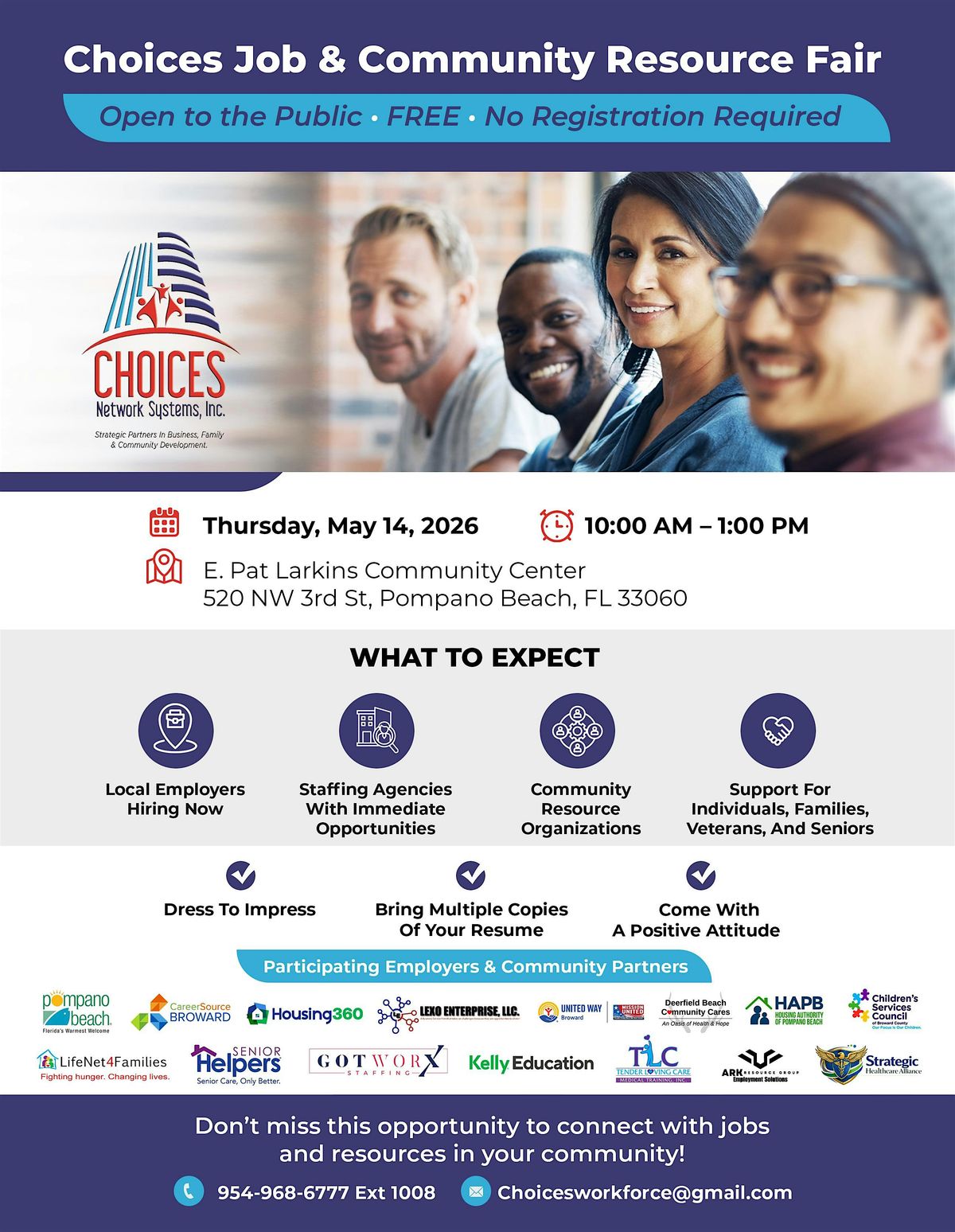 Looking for a fresh start? Swing by the Choices Job & Community Resource Fair! This in-person event is your chance to connect with local employers, discover new opportunities, and tap into community resources all in one spot. Whether you’re job hunting or just curious, come chat with friendly folks ready to help you take the next step. Don’t miss out on meeting great people and finding valuable support!