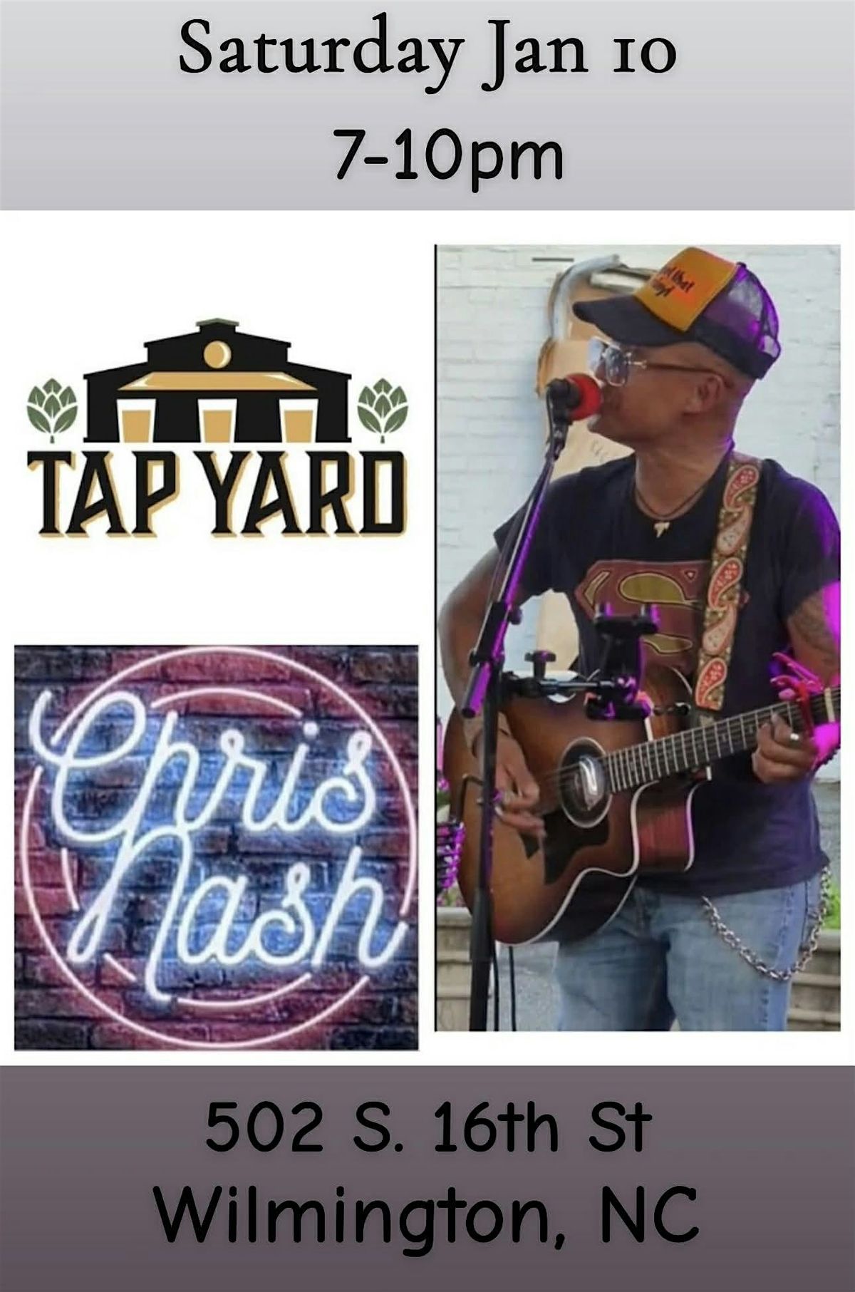 Chris Nash is hitting the Tap Yard stage on Saturday January 10th! Don't miss this incredible local music at your favorite neighborhood bar.