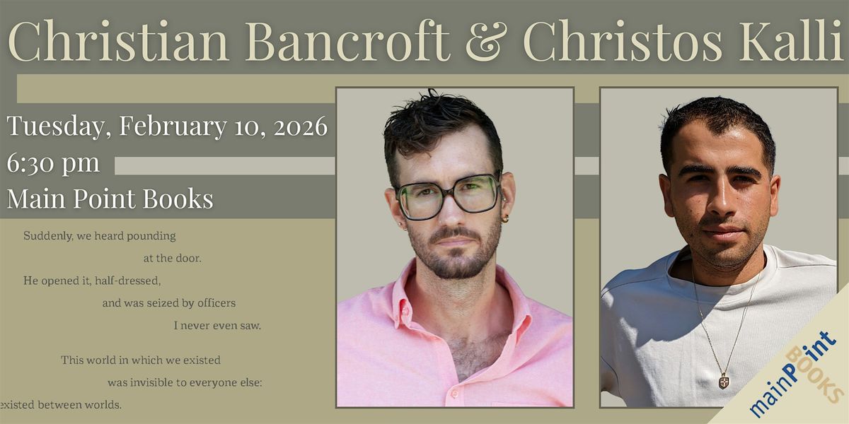 Main Point Books welcomes poets Christian Bancroft & Christos Kalli in celebration of Christian's new book "A Ghost Has No Fantasies."
