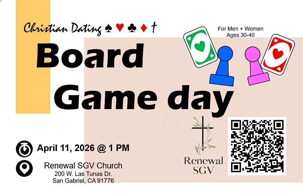 Looking for a fun and meaningful way to meet other Christian singles (ages 30-40) in your area? Join us at 200 W Las Tunas Dr for a day of board games and conversations for Christian individuals like yourself.