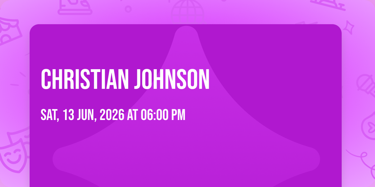 ✨ Discover the extraordinary at Christian Johnson, where magic meets reality in ways you've never imagined! 🏛️ Set in Rick Bronson's House of Comedy - MN nestled in bustling Minneapolis, MN, this event promises to be a landmark occasion. 📅 Taking place on June 13th, 2026 at 06:00 PM, it's going to create an atmosphere where every moment becomes a cherished memory. 🌟 Immerse yourself in an experience crafted with attention to every detail, designed to surprise and delight at every turn. They have worked tirelessly to ensure this event exceeds all expectations, bringing together elements of entertainment, innovation, and pure joy. 🎊 Don't miss your chance to be part of this remarkable journey!http://maps.seatics.com/RickBronsonsHouseofComedy_GAPreferred_2024-07-09_2024-07-09_0416_07092024_042323_SVGC_tn.png