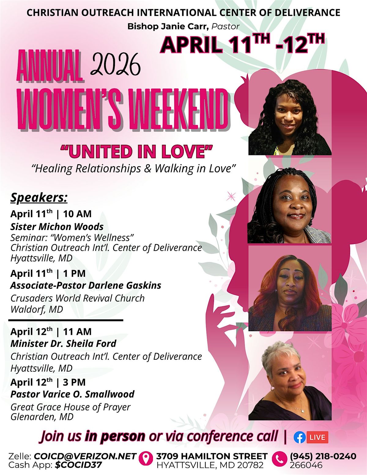 Hey ladies! Join us for the Christian Outreach Annual Women's Weekend, an amazing chance to connect, recharge, and grow your faith with awesome women in person. Expect inspiring talks, food, activities, and church. It's all about building friendships and deepening your walk with God.