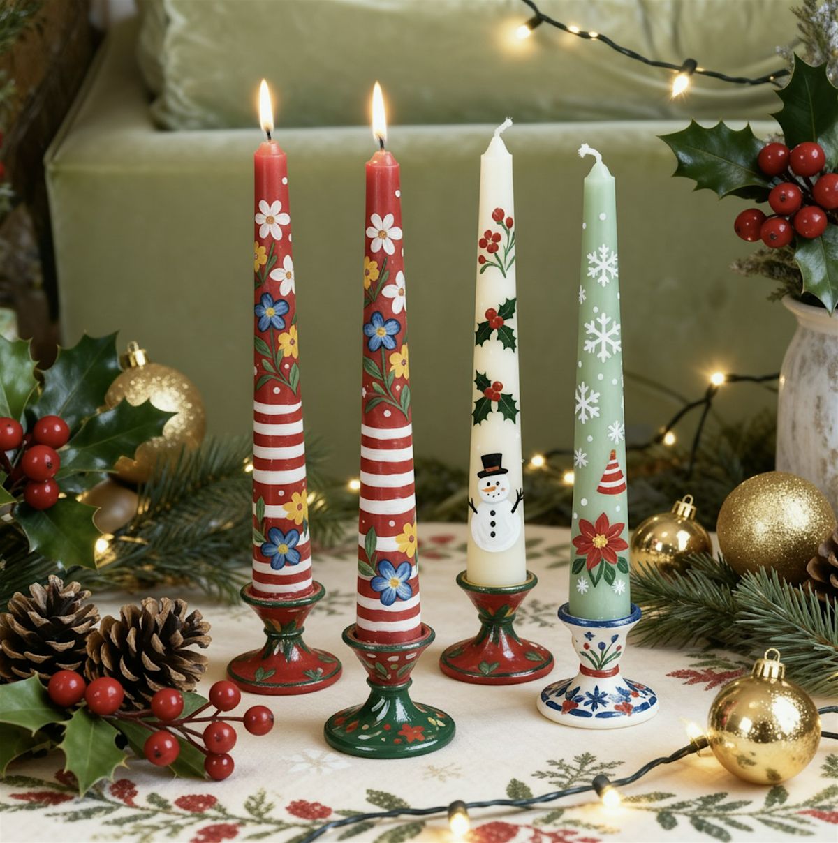 Design and paint a pair of candles per ticket (2 x candles), a piece you’ll be proud to display or gift this Christmas.