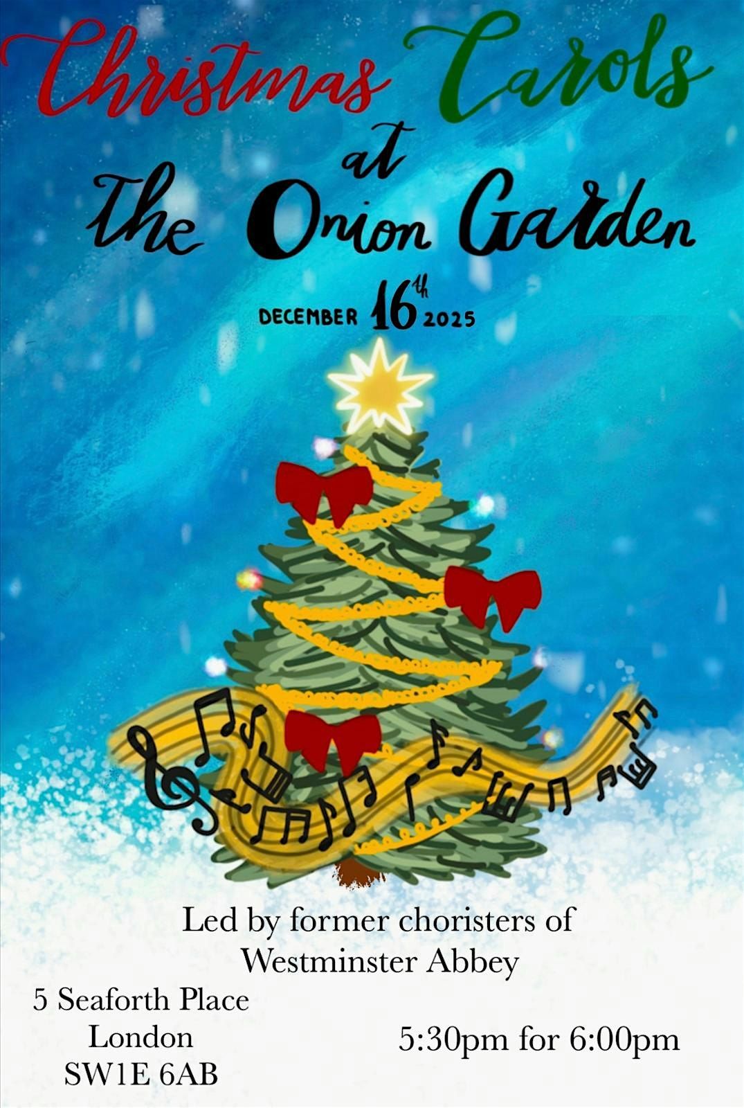 Join us and the Lord Mayor of Westminster for an evening filled with festive tunes and good vibes. Former choristers from Westminster Abbey Choir will be singing your favorite Christmas carols - and the lesser known ones - surrounded by the charming ambiance of The Onion Garden. Mulled wine and mince pies will be available along with the usual delicions fayre from the cafe. Get here early as the Lord Mayor kicks off the evening at 6pm. Bring your friends, family, and holiday cheer—let’s make this season unforgettable together!