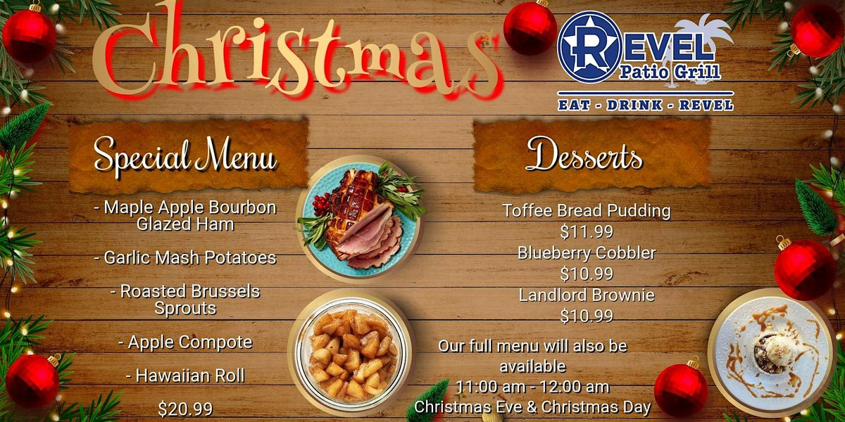 Come celebrate Christmas Eve with us at The Revel Patio Grill! We're keeping the kitchen hot and the drinks flowing so you can enjoy the holidays without the hassle of cooking.