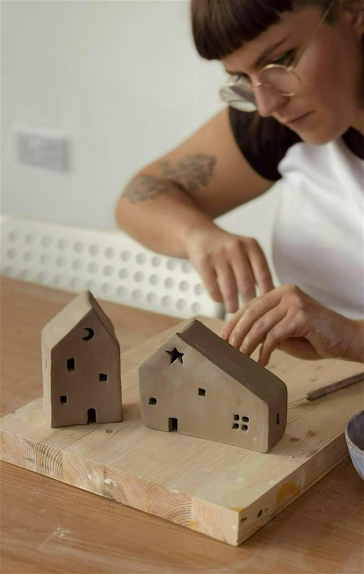 Each participant will make up to 2 houses each and will be finished with a transparent glaze for perfect contrast in the evening for tealights. Collection will be available 3 weeks after your workshop.