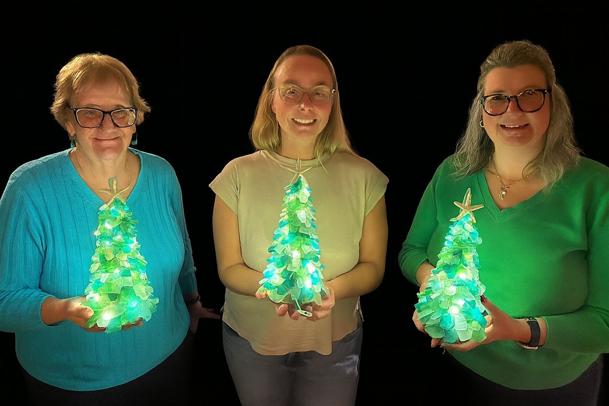 Beach Glass Collage includes a matted frame and all your supplies. Create any design you want. Plenty of samples and stencils are provided. SeaGlass tree with fairy lights is a fun and beautiful craft to display all year long. Food and Drinks available for purchase. No experience required. This is fun art, not fine art.