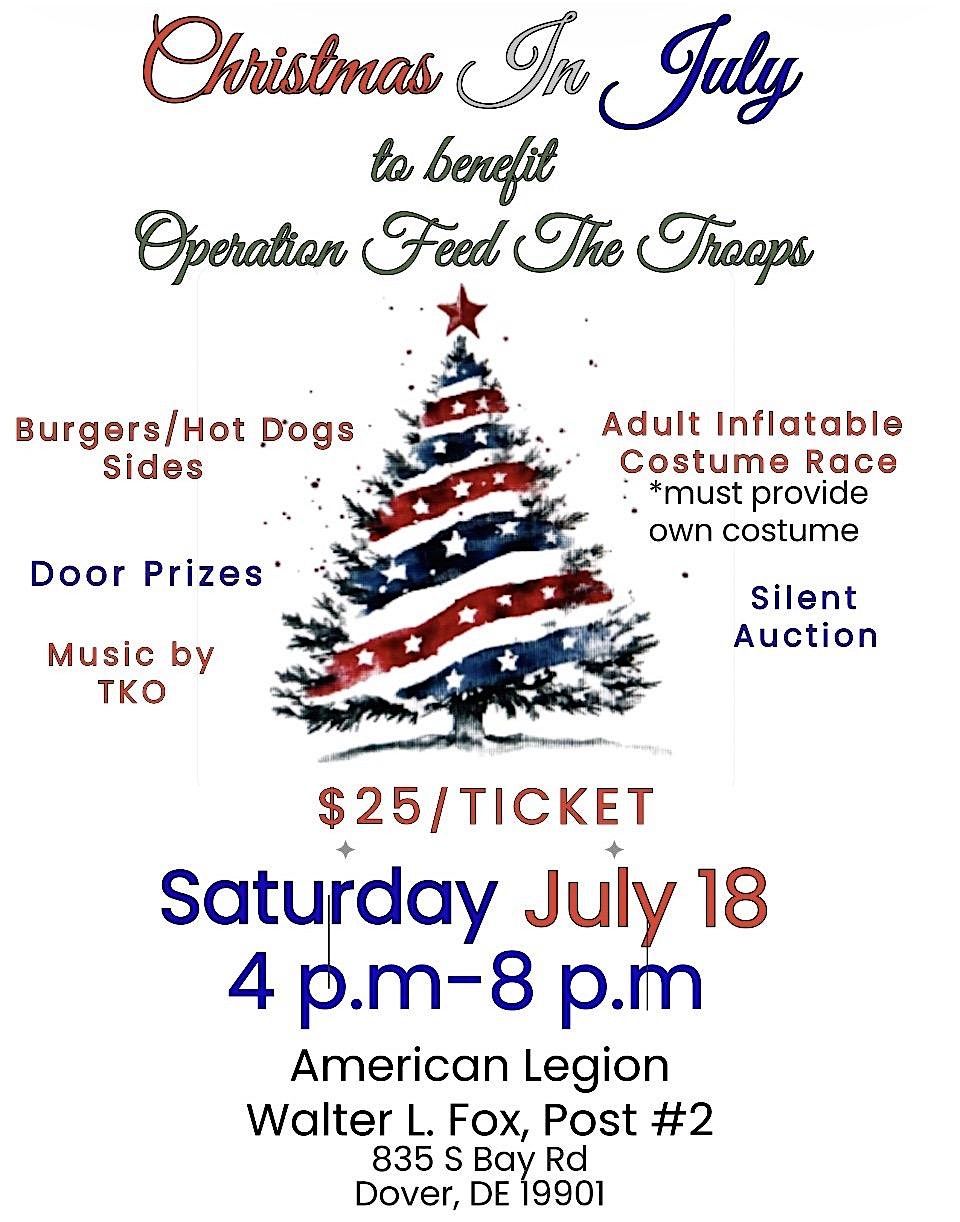 Join us for our first annual Christmas in July fundraiser for Operation Feed the Troops. Let’s make it a great Holiday for our HeroesAgenda