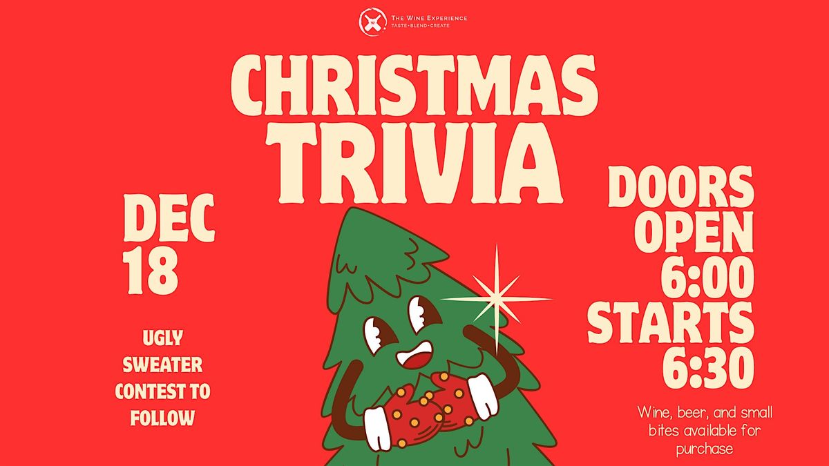 Welcome to Christmas Trivia 12/18! Join us at the Wine Experience on December 18, 2025 at 6:30 PM for a jolly good time. Get ready to test your knowledge of all things Christmas in a fun and festive atmosphere. Bring your friends and family for a chance to win exciting prizes! Don't miss out on this holiday-themed event filled with laughter and cheer. See you there!