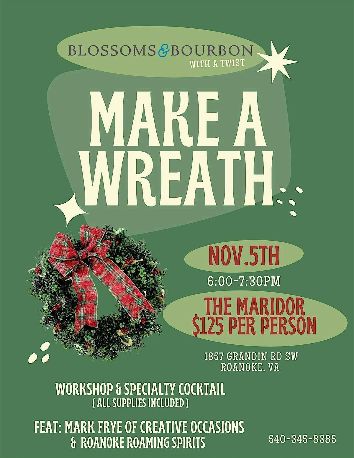 Join us for a magical holiday workshop where creativity meets festive cheer! Learn to craft a stunning Christmas wreath under the expert guidance of 30-year floral designer, Mark Frye of Creative Occasions, in the elegant surroundings of The Maridor.