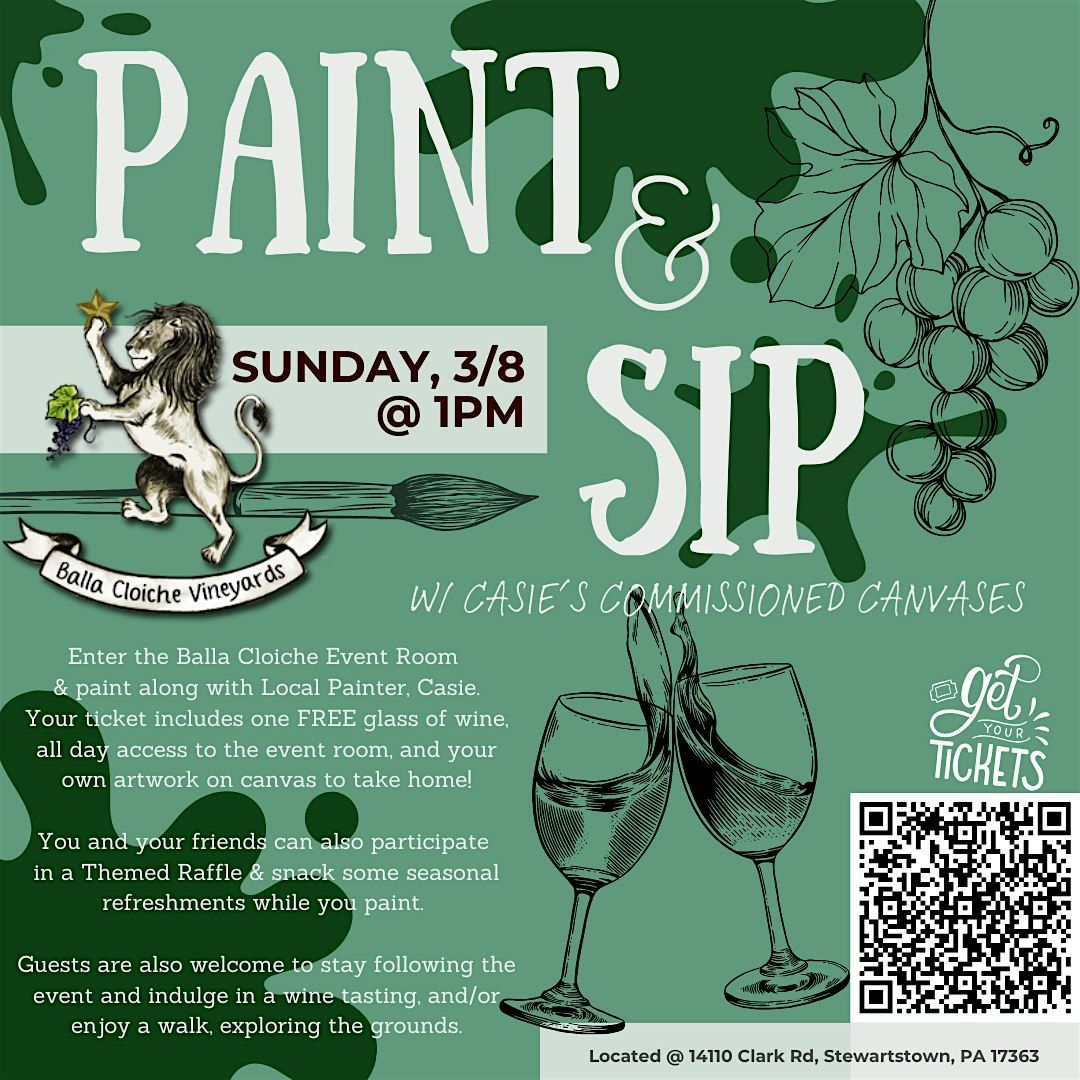 Join Local Artist, Casie w/ Casie's Commissioned Canvases for our first Paint & Sip @ Balla Cloiche Vineyards since the Winter started! We can't wait to see you on March 8th @ 1pm!